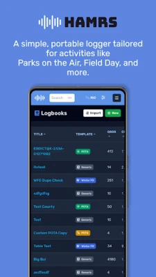 HAMRS Pro je zcela přepracovaný a jednoduchý logovací deník pro radioamatéry. Nabízí intuitivní šablony přizpůsobené pro portablové a terénní aktivity, jako je například Polní den nebo vysílání z parků a chráněných oblastí.